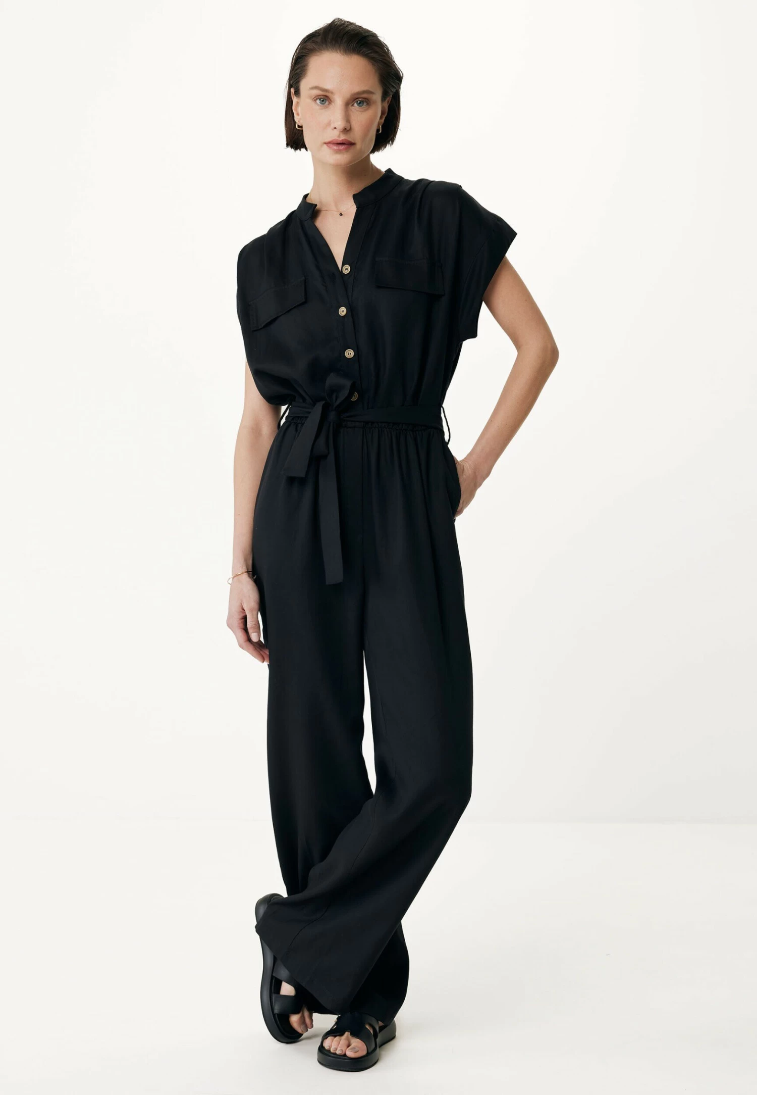 Deze jumpsuit is gemaakt van 73% lyocell, 21% viscose, 6% linnen en heeft een rechte pasvorm en een taille met koord. Dit item is een must-have voor je garderobe.