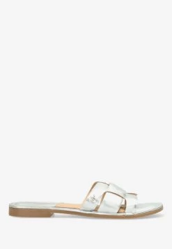 A classic sandal, these silver Jacey sandals from Mexx! The Jacey has a classic appearance and the recognizable slipper entry. It is made of 100% leather and therefore you will enjoy it for a very long time. The band over the forefoot has cut-outs and these provide a unique yet luxurious look. The Mexx logo is subtly applied by means of a small golden charm on the side. We recommend that you spray the sandals against water and dirt.